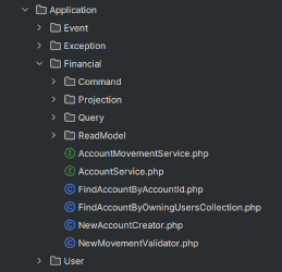 Maintaining a clean architecture structure I've followed SOLID and used DDD concepts. It seemed very natural because Event Sauce already uses the concept of aggregate root as central part of the flow for the events.